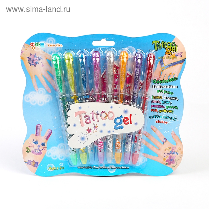 Набор гелевых ручек "Тату" 8 цветов, в блистере