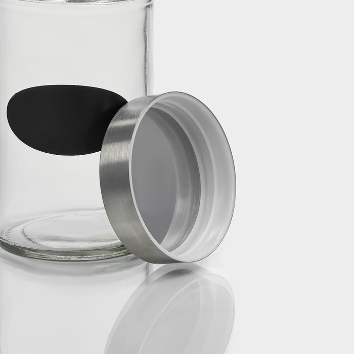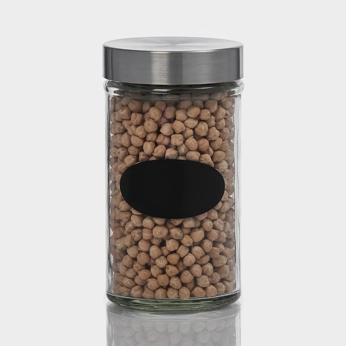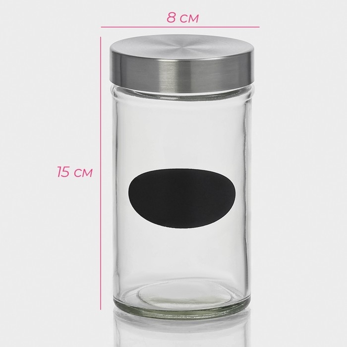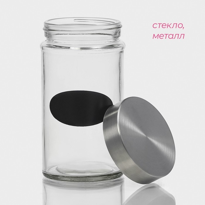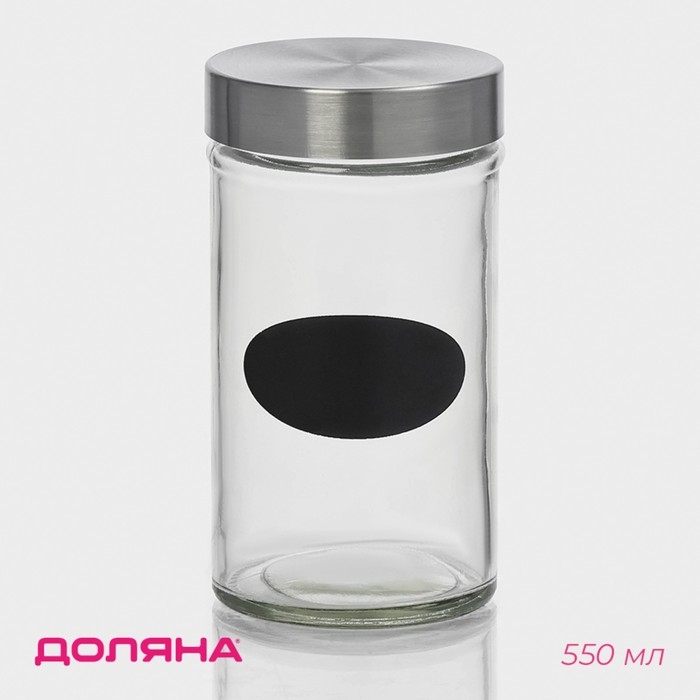 Банка стеклянная для хранения сыпучих продуктов с местом под надпись Доляна «Премиум», 550 мл, 15×8 см, с металлической крышкой