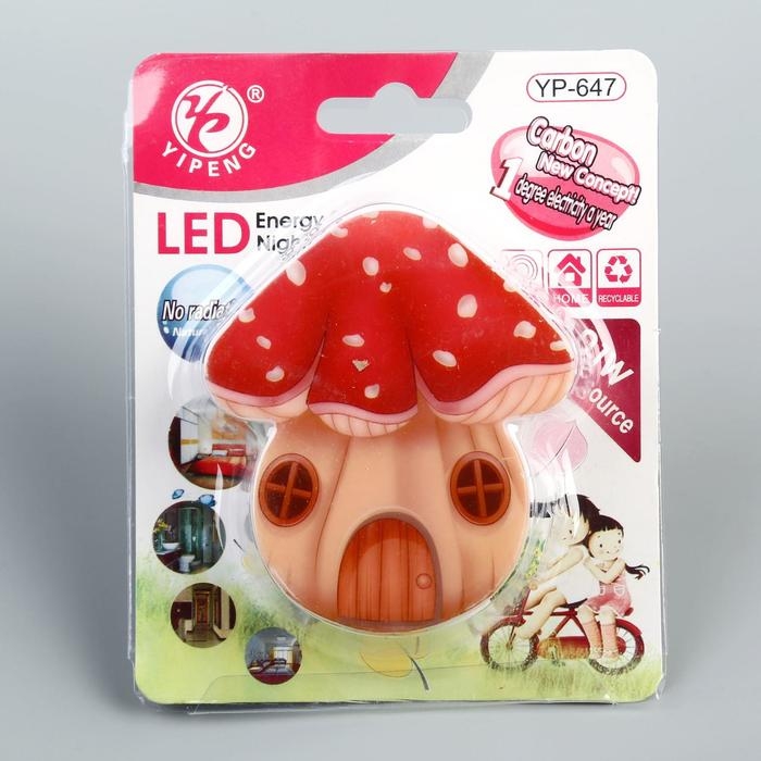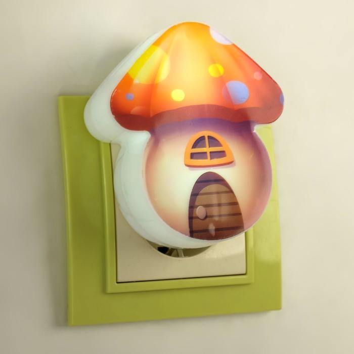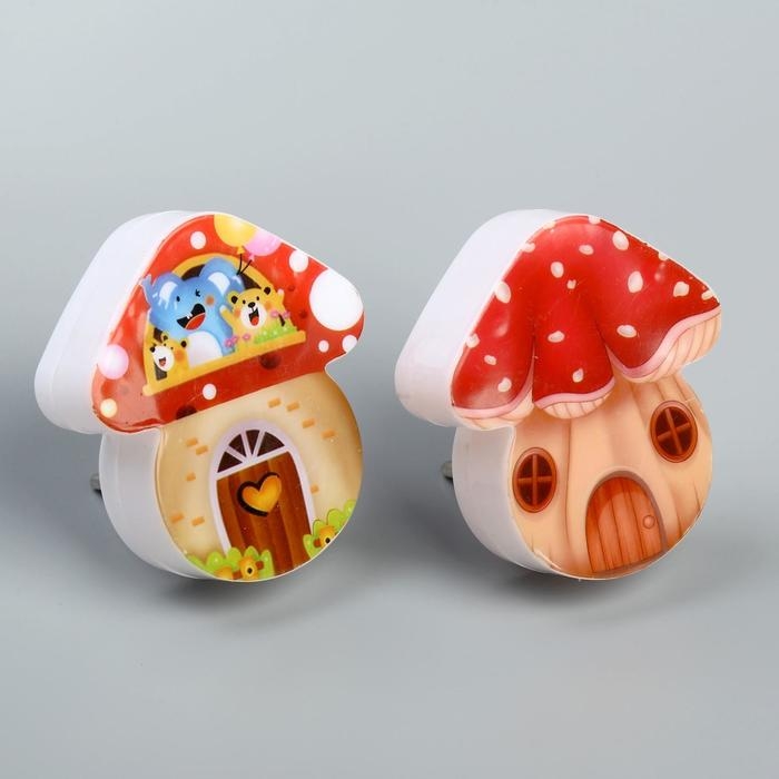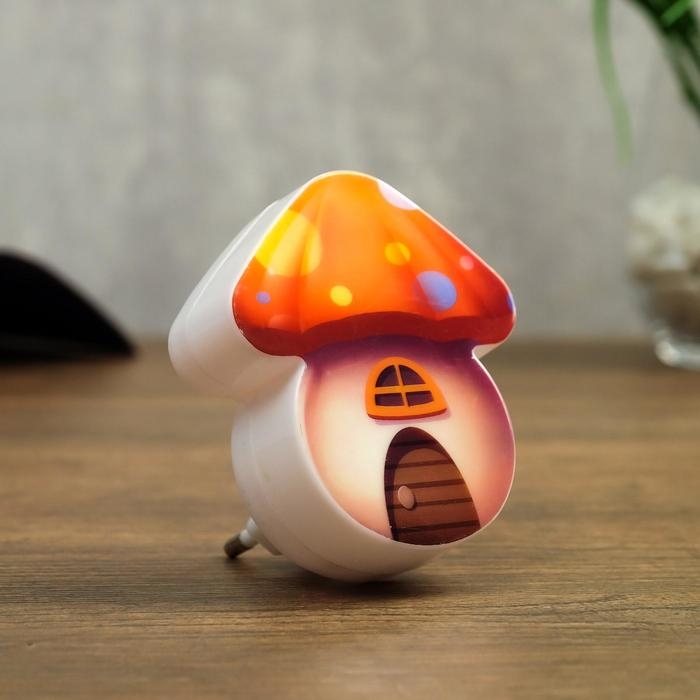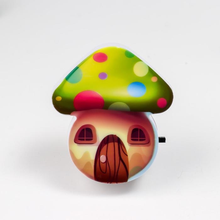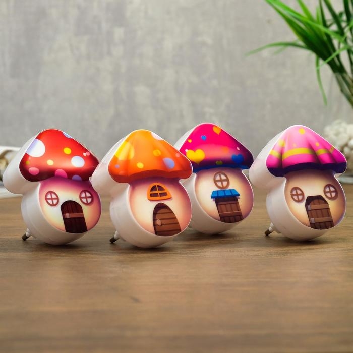 Ночник пластик от сети "Домик-грибок" МИКС 8х7х2,5 см RISALUX