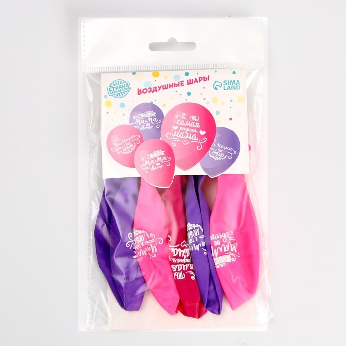 Воздушный шар латексный 12" "Мамочке", пастель, 5 шт.