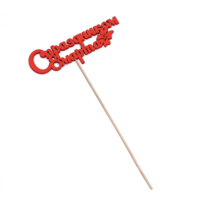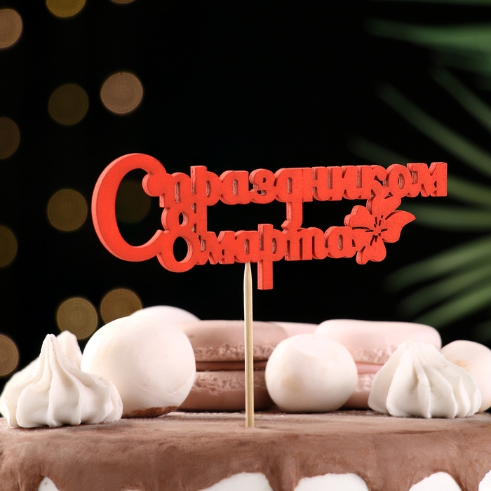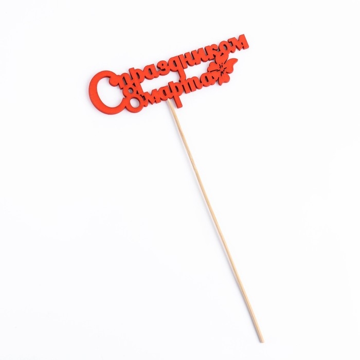 Топпер "С праздником 8 марта" красный 12,5х4,5см Дарим Красиво
