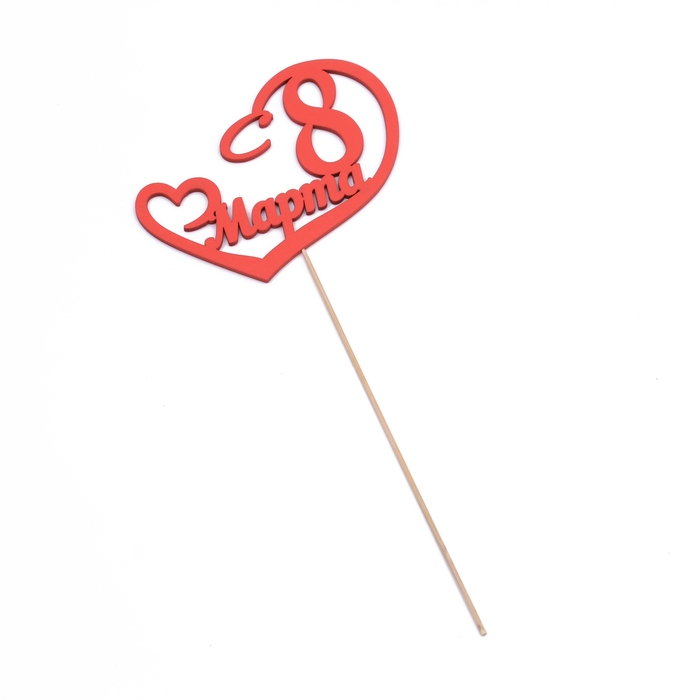 Топпер "С 8 марта", сердце, красный, 12.5х11см Дарим Красиво