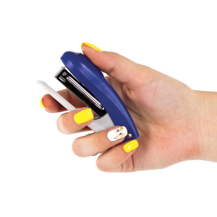 Степлер № 10 до 12 листов, BRAUBERG Einkommen, пластиковый корпус, встроенный антиСтеплер, синий