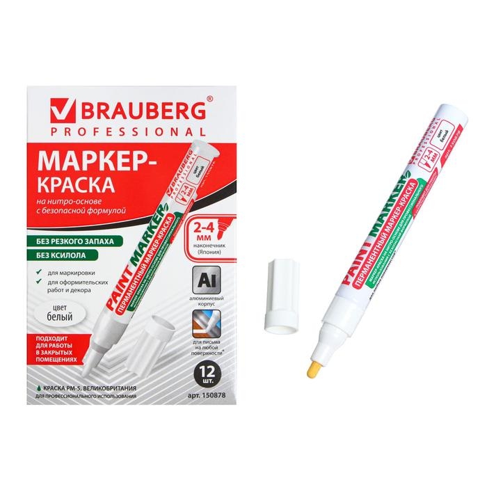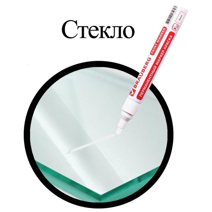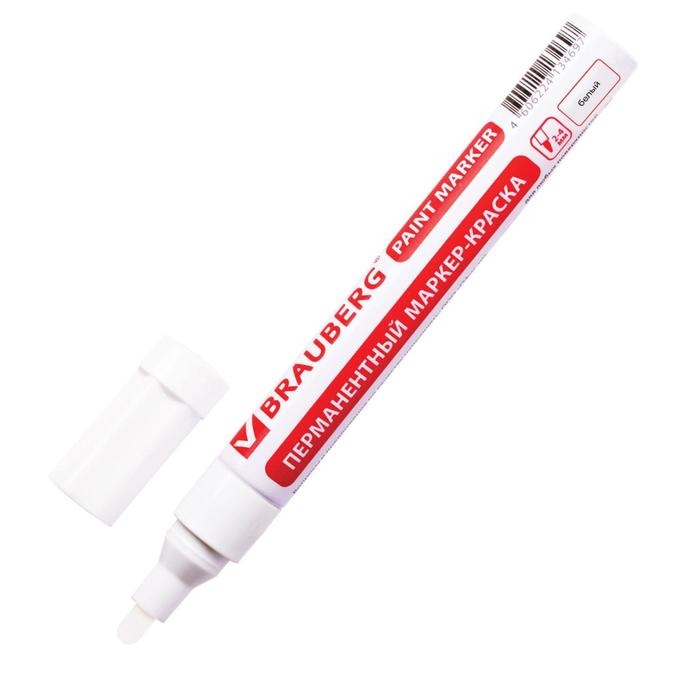 Маркер-краска (лаковый) 4.0 мм BRAUBERG, металлический корпус, белая нитро-основа