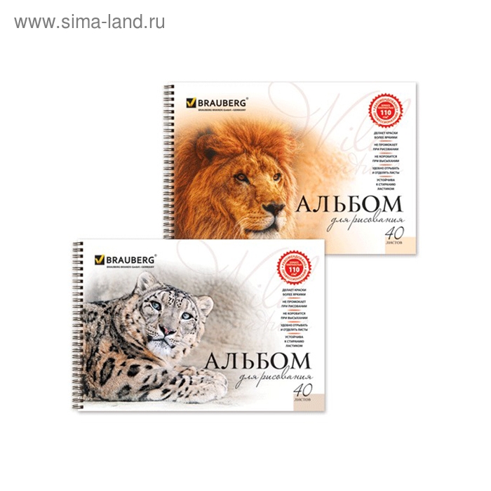 Альбом для рисования BRAUBERG "Благородные кошки", А4, 40 листов на гребне, 110 г/м2