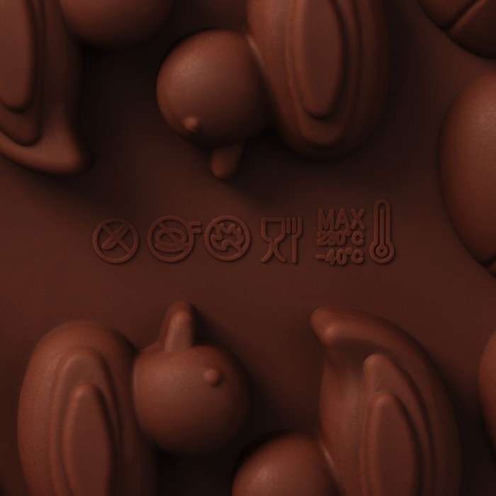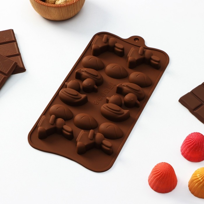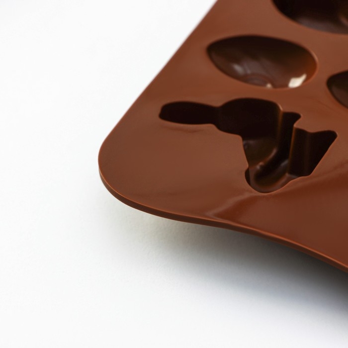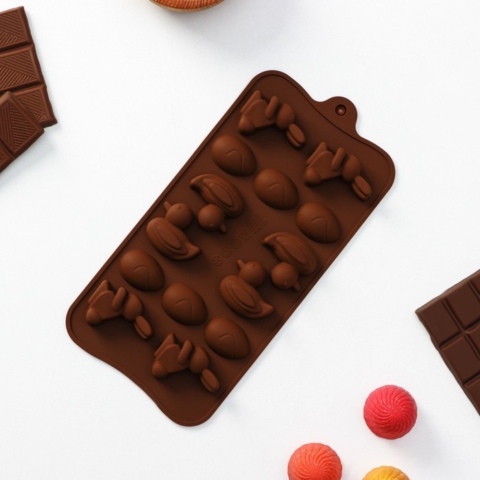 Форма для конфет и шоколада Доляна «Зайцы, утки и яйца», силикон, 22×10,2×1,4 см, 14 ячеек, цвет коричневый