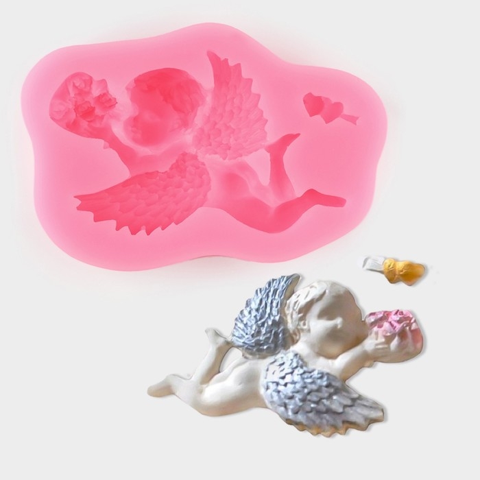 Молд «Ангел с букетом», силикон, 9,3×6×1,9 см, цвет розовый