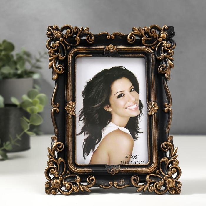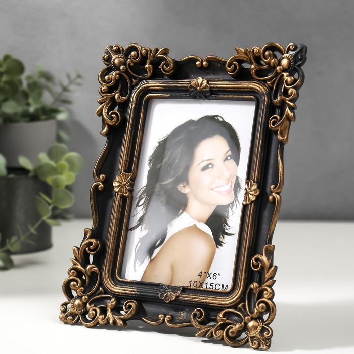 Фоторамка пластик 10х15 см "Эклектика" тёмное золото на чёрном 20,5х16 см