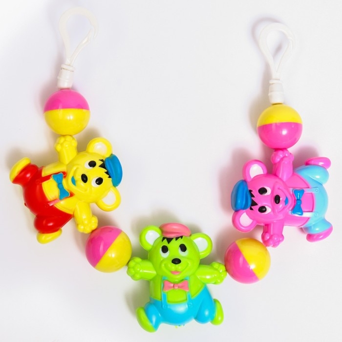 Растяжка на коляску/кроватку «Слоник», 3 игрушки с погремушками, цвет МИКС, Крошка Я