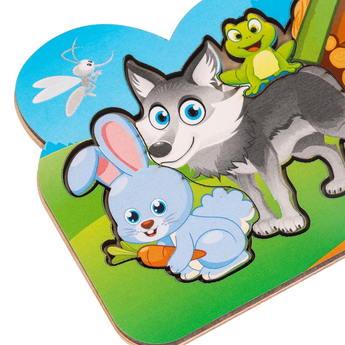 Головоломка из отдельных фигурок - это не только игра в предложенной рамке, но и игра с деталями. Перед сборкой попросите малыша назвать каждое животное, его приметные черты. Вспомните вместе с ребёнком сказки, в которых участвовал персонаж.