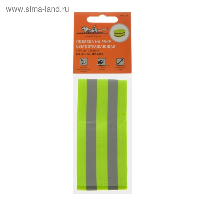 Повязка на руку Airline, светоотражающая, 5 х 30 см, зеленая