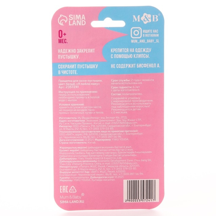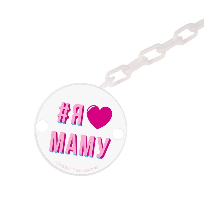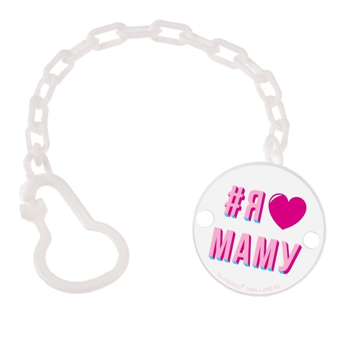 Держатель для соски - пустышки «Я люблю маму», на цепочке, цвет белый