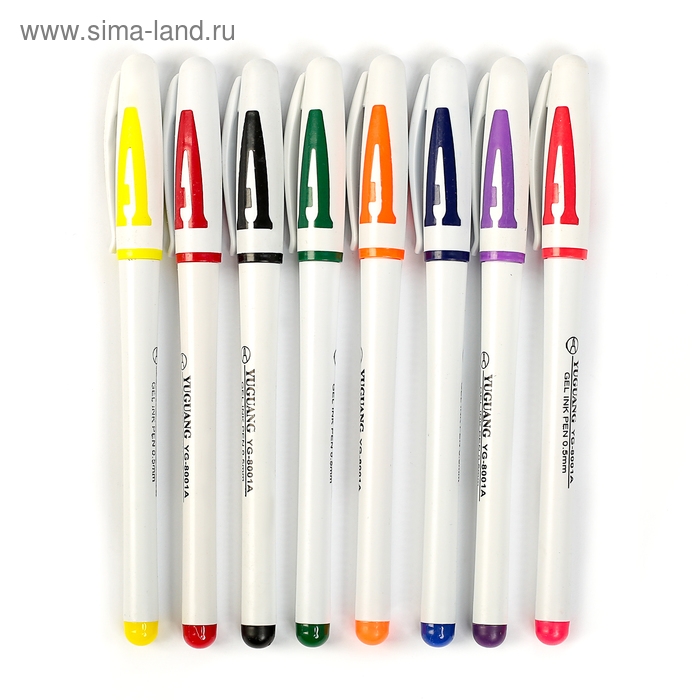 Набор гелевых ручек, 8 цветов, корпус белый с цветными вставками, в блистере