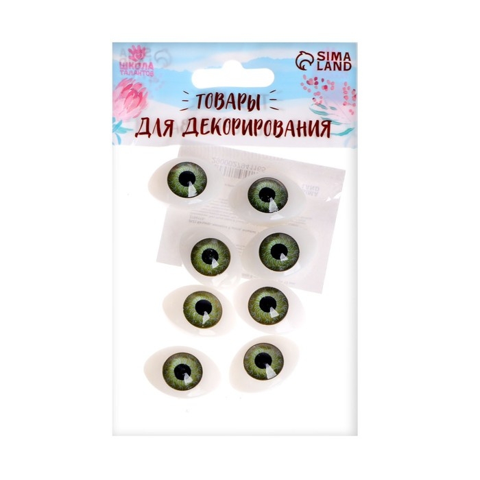 Глаза, набор 8 шт., размер радужки 12 мм, цвет зелёный