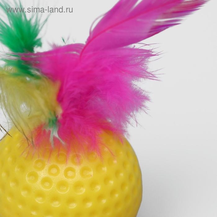 Игрушка для кошек "Рифлёный шар с пером", 3,5 см, микс цветов