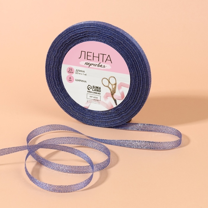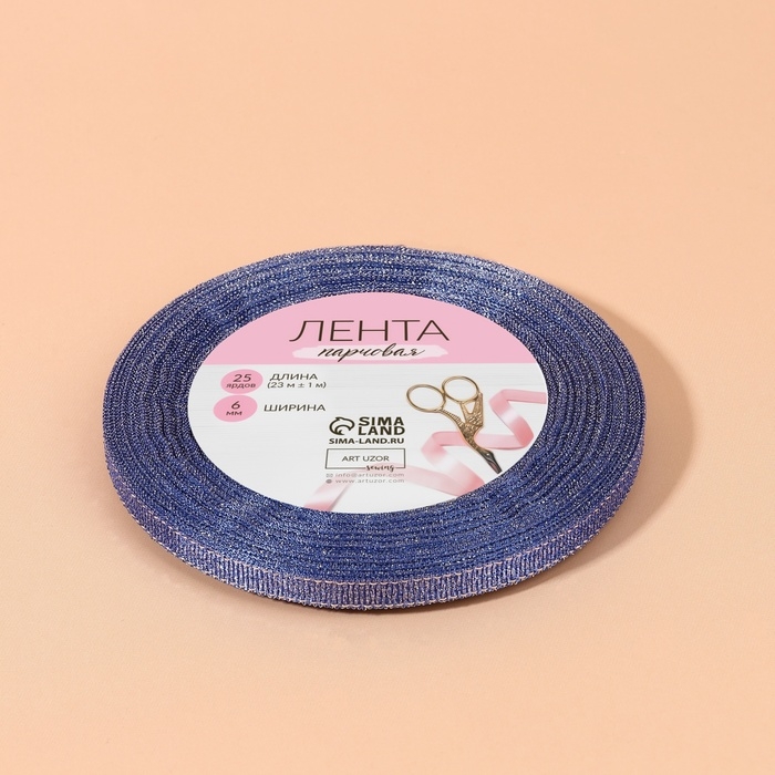 Лента парчовая, 6 мм, 23 ± 1 м, цвет синий №037