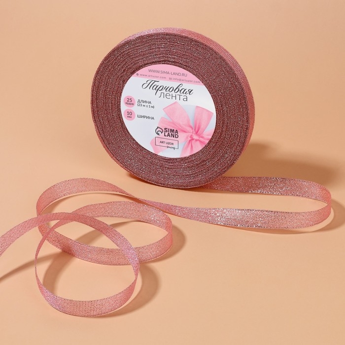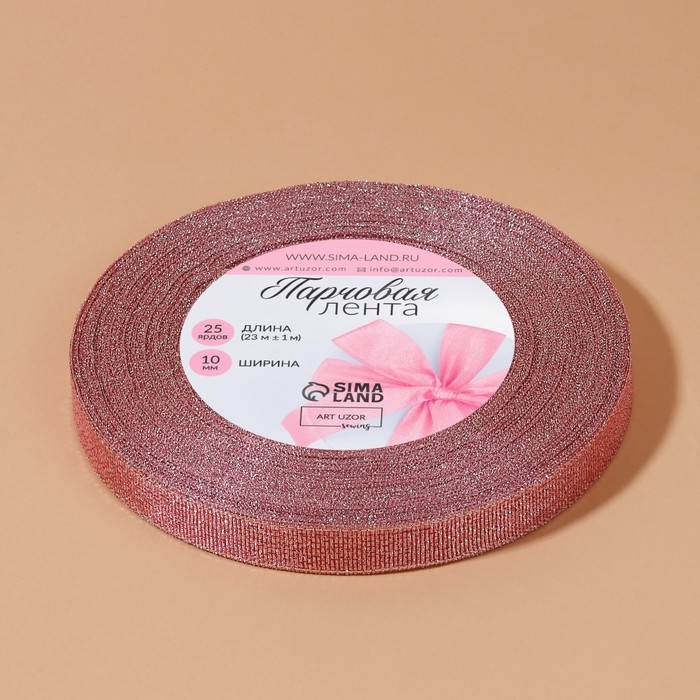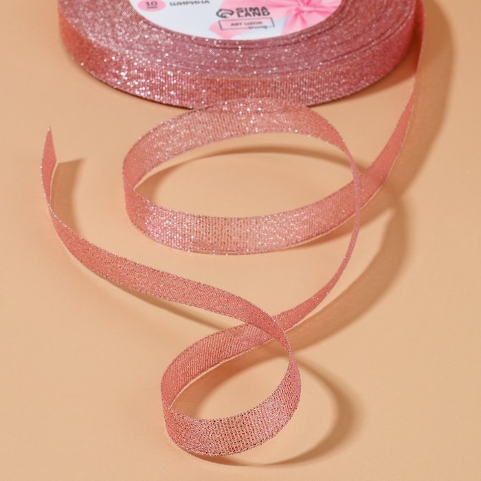 Лента парчовая, 10 мм, 23 ± 1 м, цвет розовый №013