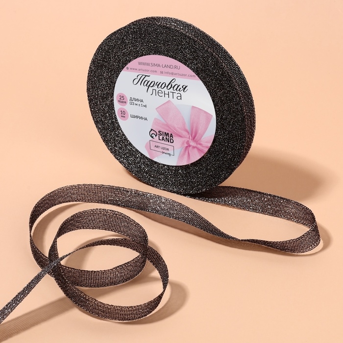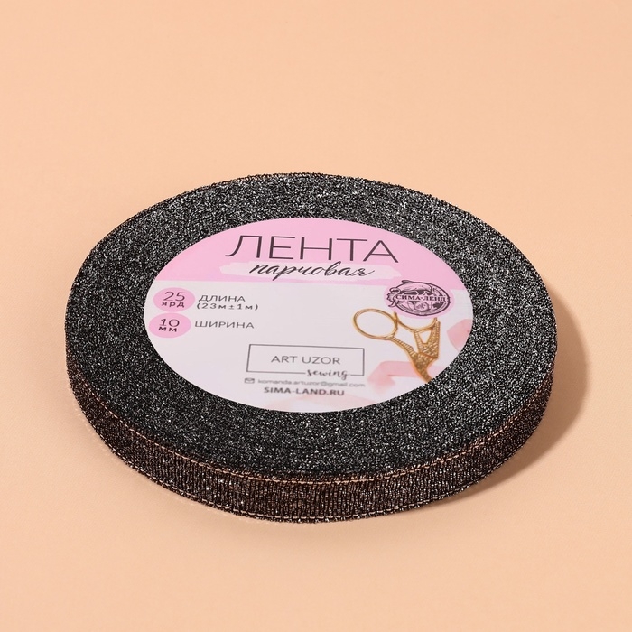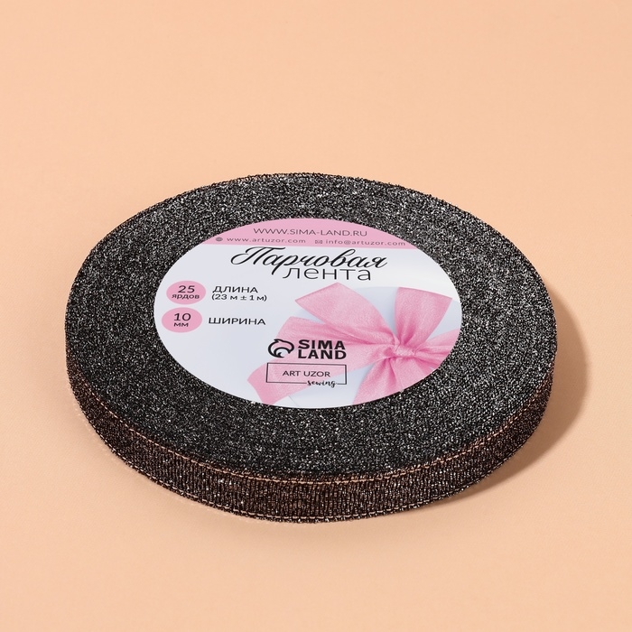 Лента парчовая, 10 мм, 23 ± 1 м, цвет чёрный №029