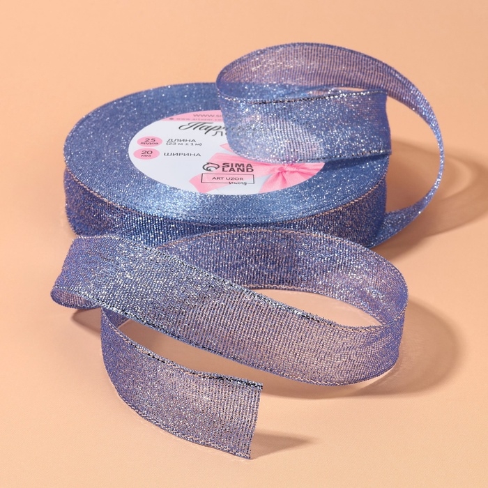 Лента парчовая, 20 мм, 23 ± 1 м, цвет синий №037