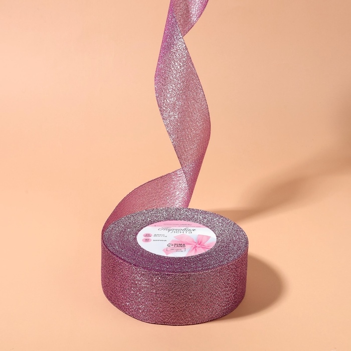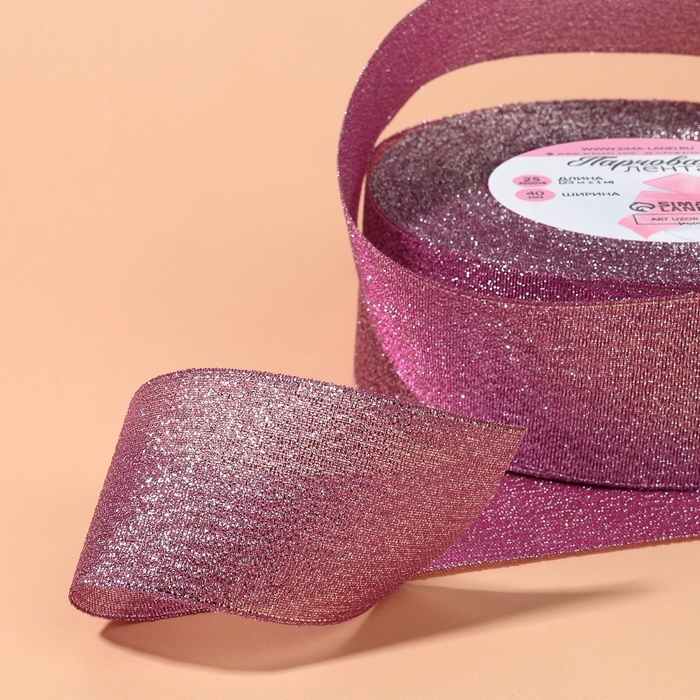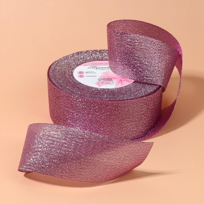 Лента парчовая, 40 мм, 23 ± 1 м, цвет сиреневый №021