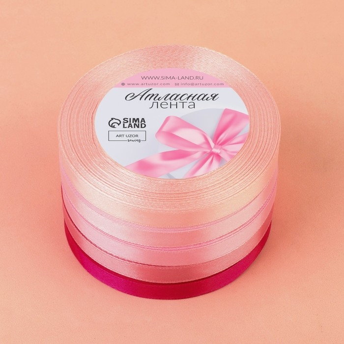 Набор атласных лент, 5 шт, размер 1 ленты: 10 мм × 23 ± 1 м, цвет розовый спектр