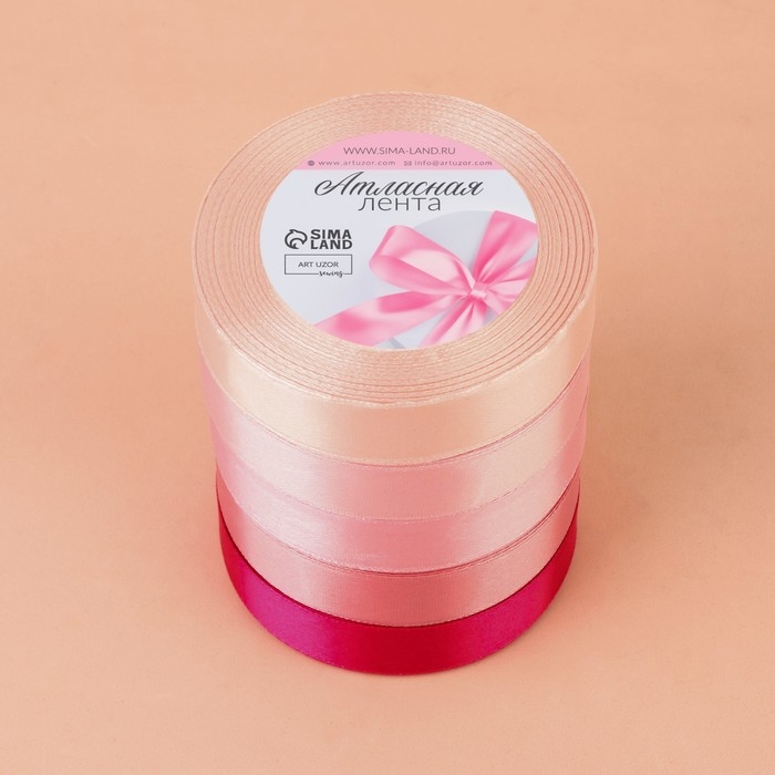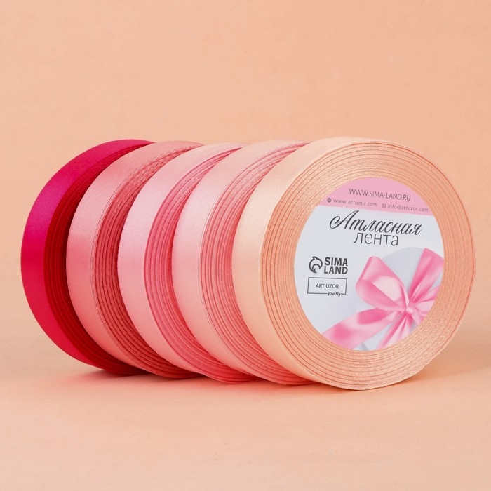 Набор атласных лент, 5 шт, размер 1 ленты: 20 мм × 23 ± 1 м, цвет розовый спектр