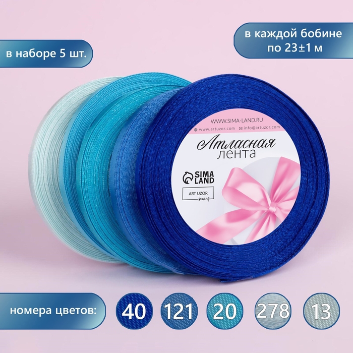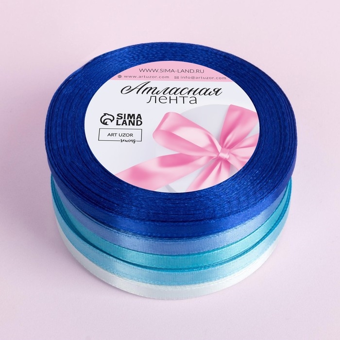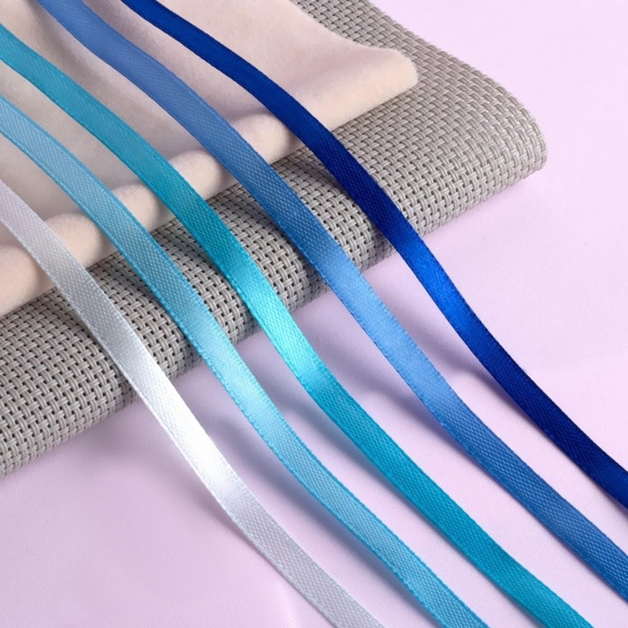 Набор атласных лент, 5 шт, размер 1 ленты: 6 мм × 23 ± 1 м, цвет синий спектр