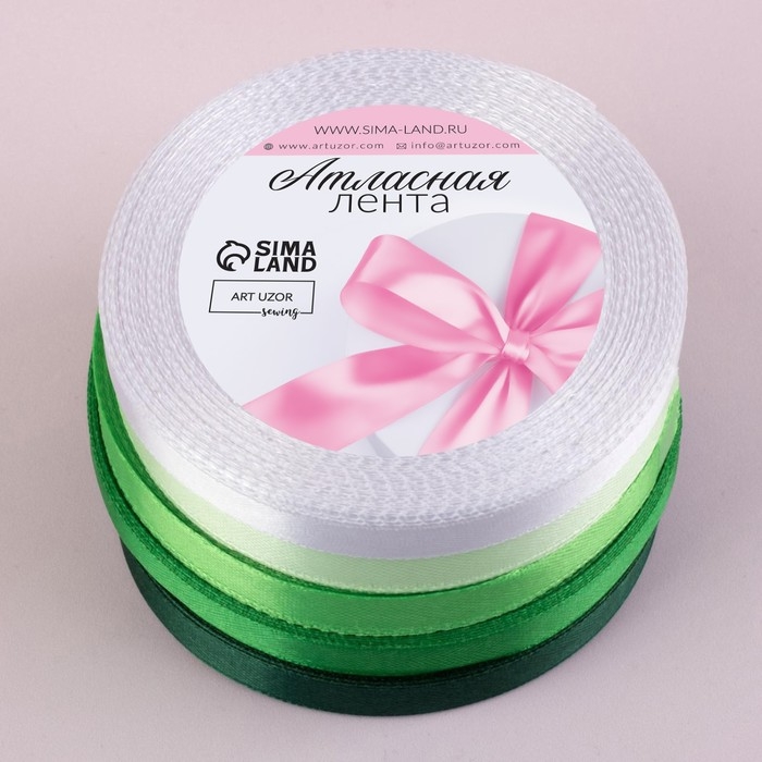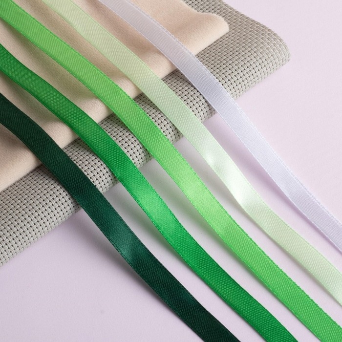 Набор атласных лент, 5 шт, размер 1 ленты: 10 мм × 23 ± 1 м, цвет зелёный спектр