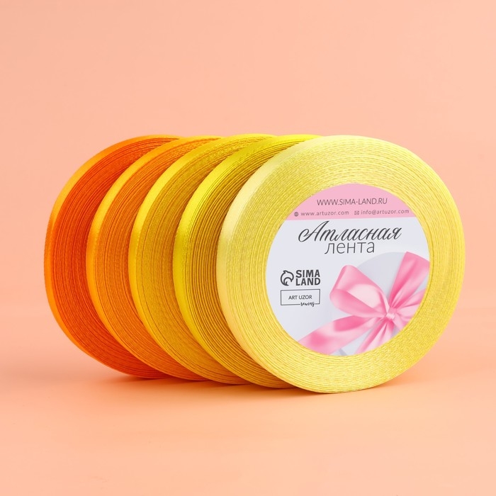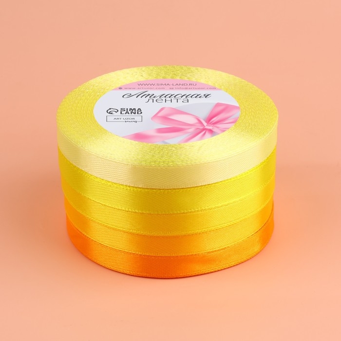 Набор атласных лент, 5 шт, размер 1 ленты: 10 мм × 23 ± 1 м, цвет жёлтый спектр