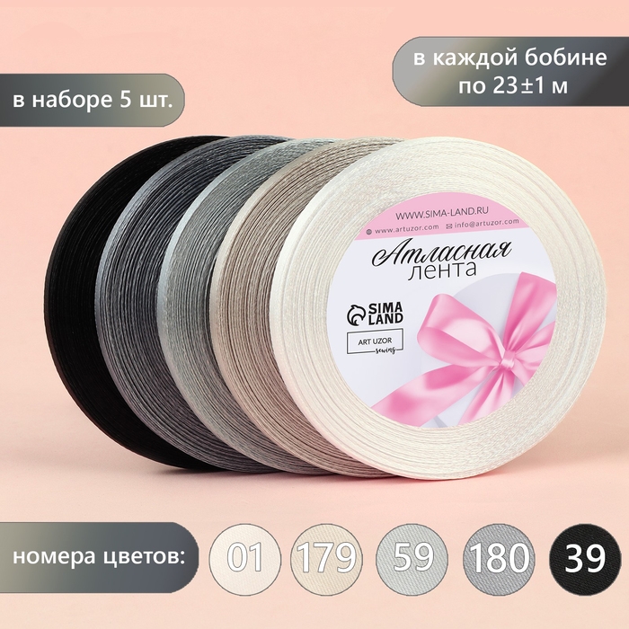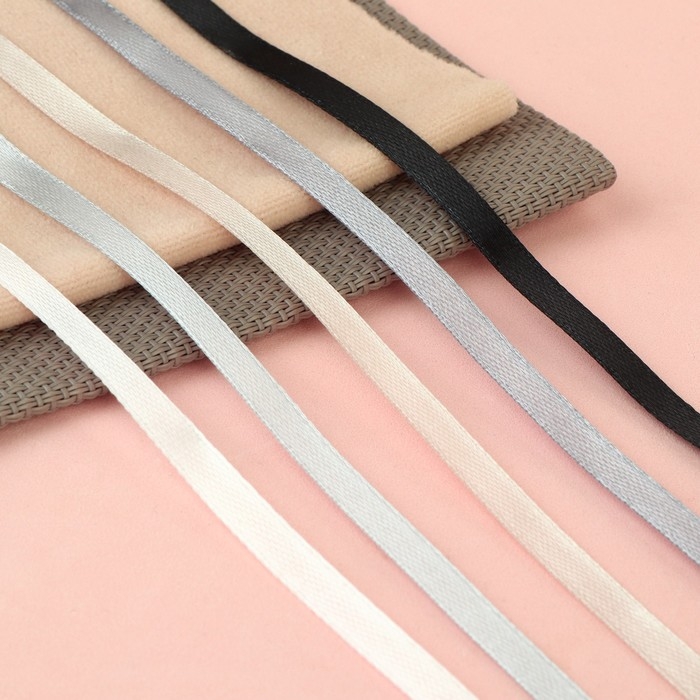 Набор атласных лент, 5 шт, размер 1 ленты: 6 мм × 23 ± 1 м, цвет серый спектр