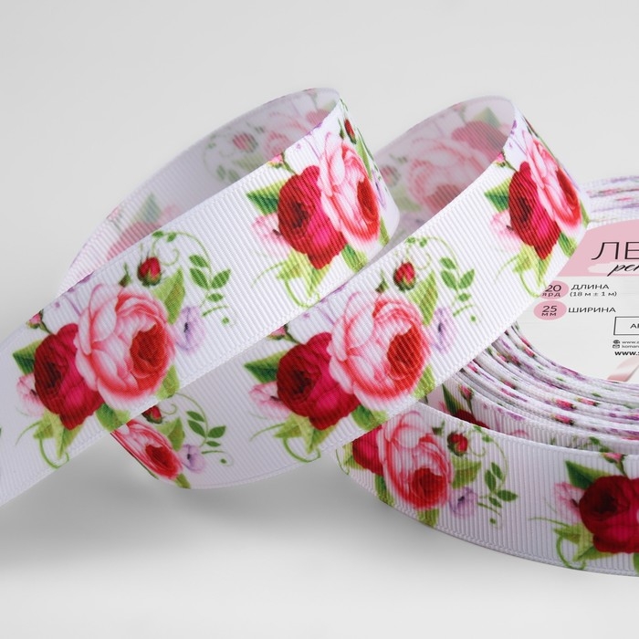 Лента репсовая «Пионы», 25 мм, 18 ± 1 м, разноцветная