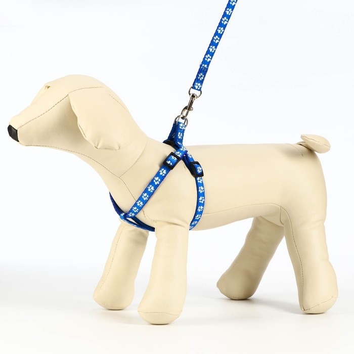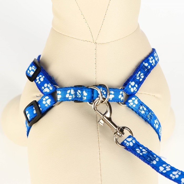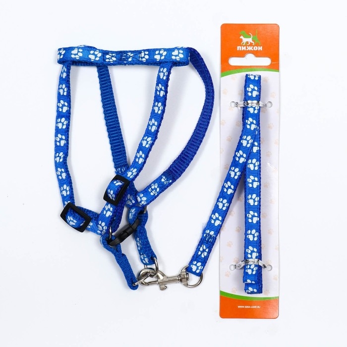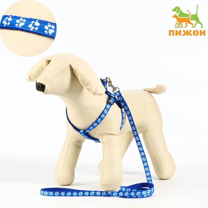 Комплект прошитый "Лапки", ширина 1 см, поводок 120 х 1 см, ОГ 23-35 см, синий