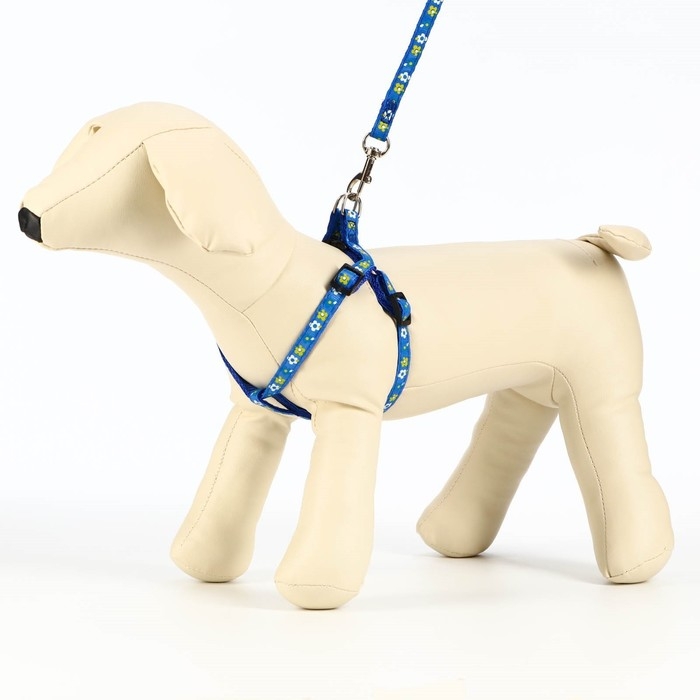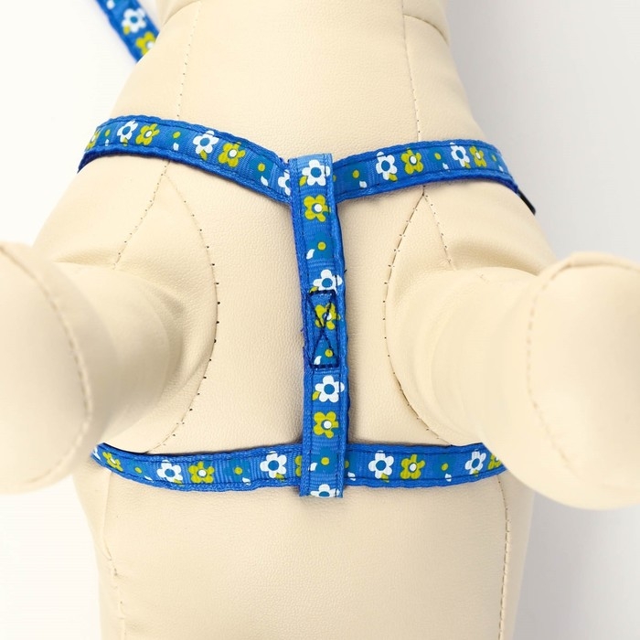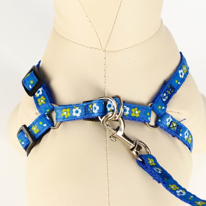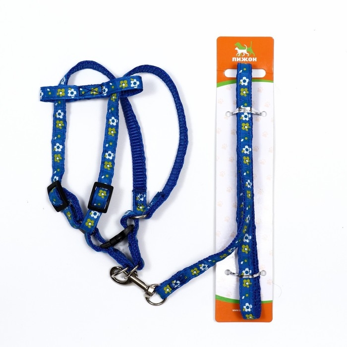 Комплект прошитый "Цветы", поводок 120 х 1 см, ОГ 23-35 см, тёмно-синий