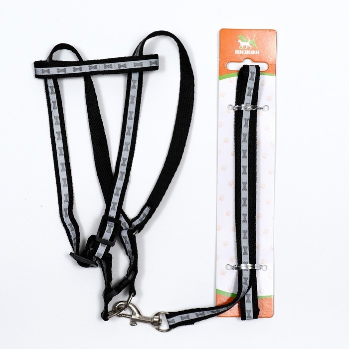 Комплект светоотражающий "Косточки", поводок 1 х 120 см (ОШ 22-34 см ,ОГ 22-34 см) чёрный