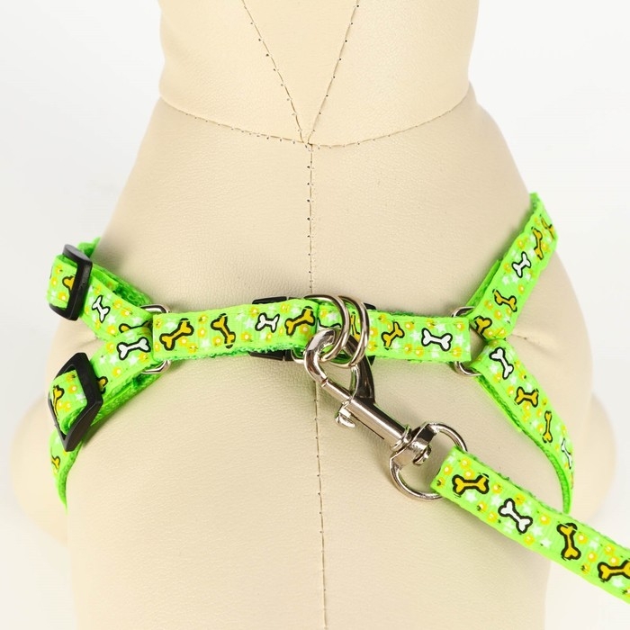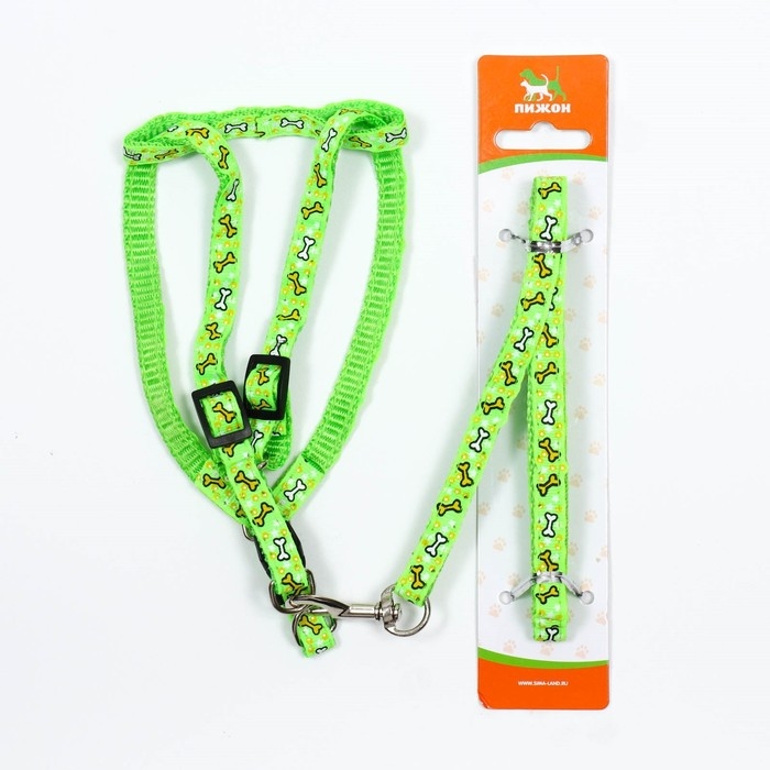 Комплект "Звёздные косточки", поводок 120 х 1 см, ОГ 23-35 см, зелёный