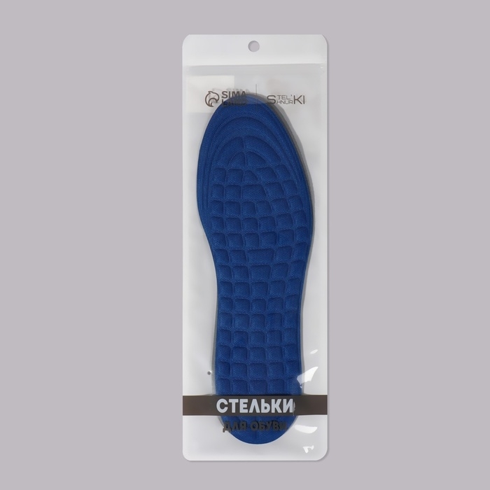 Стельки для обуви, универсальные, спортивные, р-р RU до 43 (р-р Пр-ля до 44), 27,5 см, пара, цвет тёмно-синий
