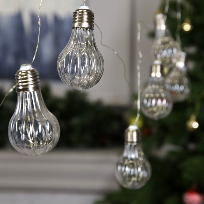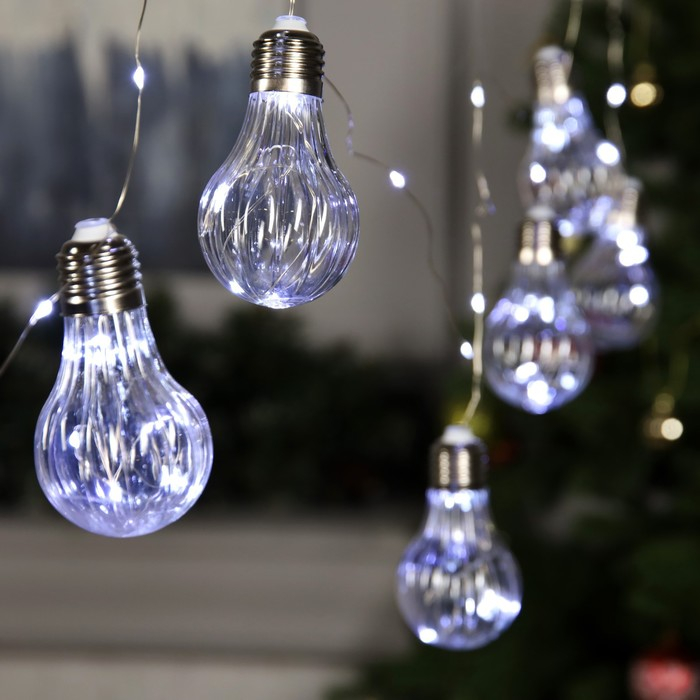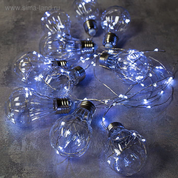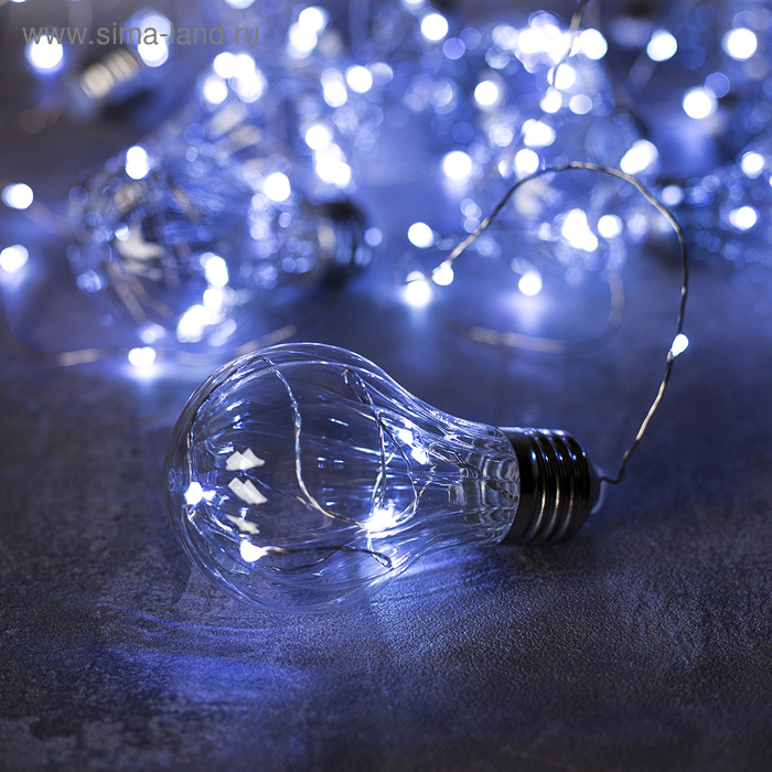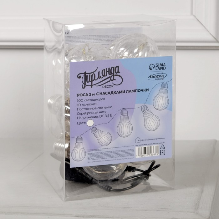 Гирлянда «Нить» 3 м роса с насадками «Лампочки объёмные», IP20, серебристая нить, 100 LED, свечение белое, 3.5 В