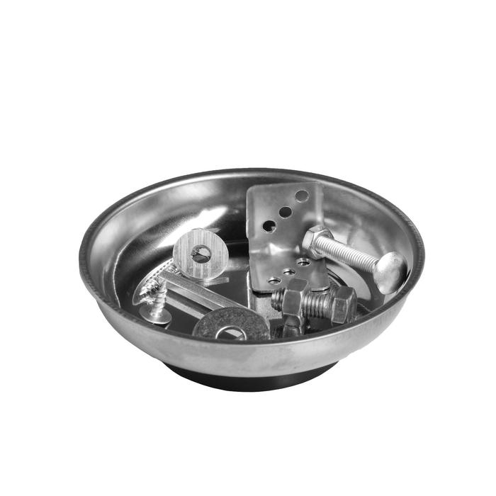 Магнитная тарелка диаметр 108мм - это простой и удобный по своей конструкции инструмент для хранения или сбора различных мелочей, например, гаек или болтов. Тарелка оснащена мощным магнитом.