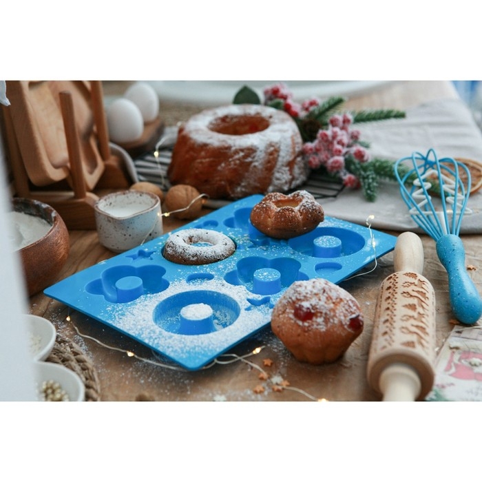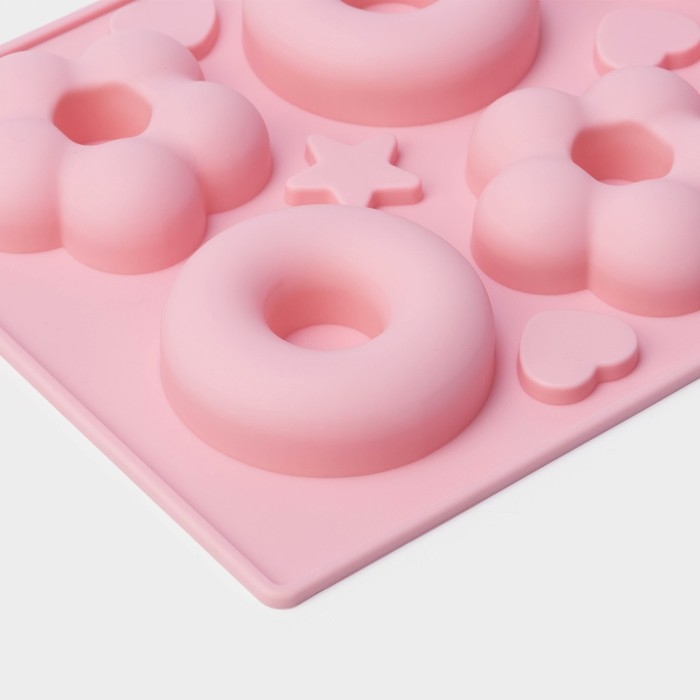 Форма для выпечки Доляна «Сладости. Пончик и Ромашка», силикон, 25,5×17,5 см, 6 ячеек, цвет МИКС