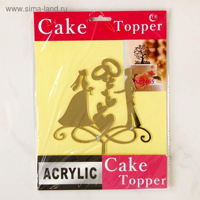 Топпер для торта «Обручальные кольца», 13×18 см, цвет золото