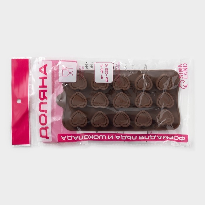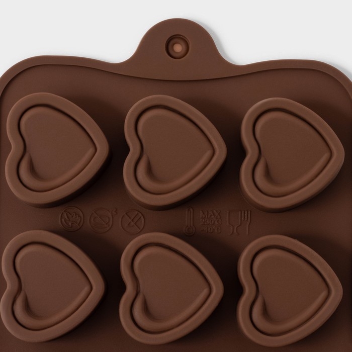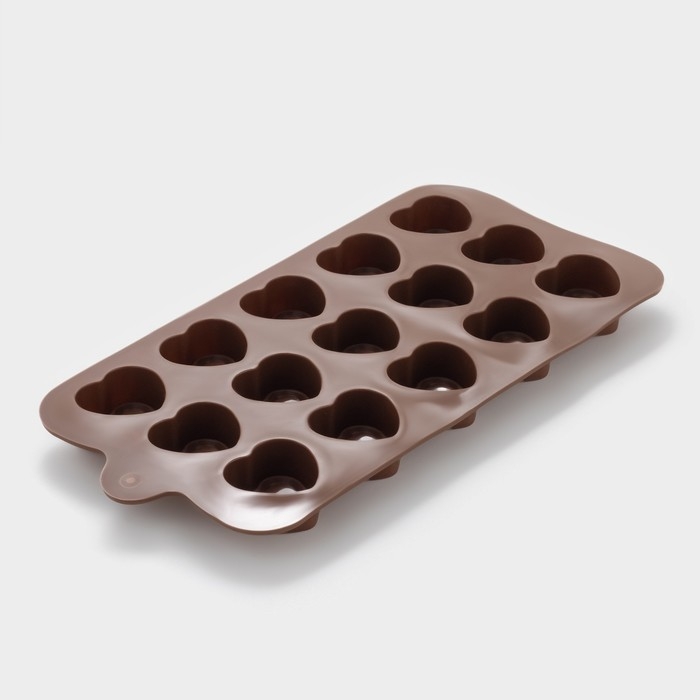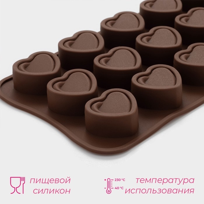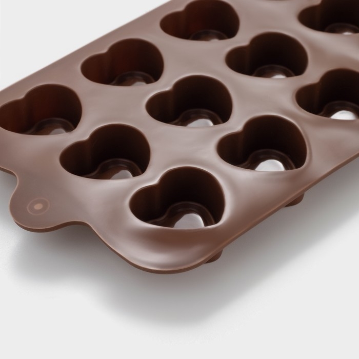 Форма для конфет и шоколада Доляна «Сердце», силикон, 21×10×1,5 см, 15 ячеек (2,9×2,7 см), цвет коричневый