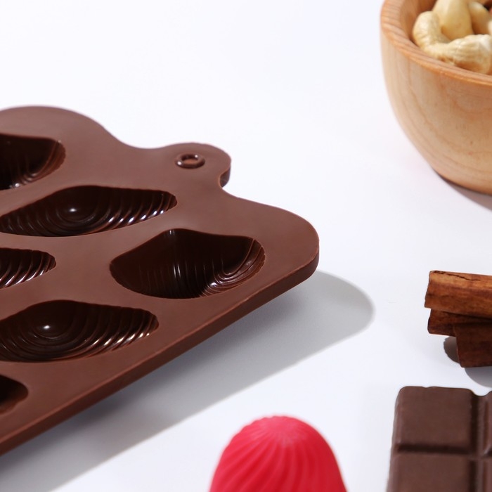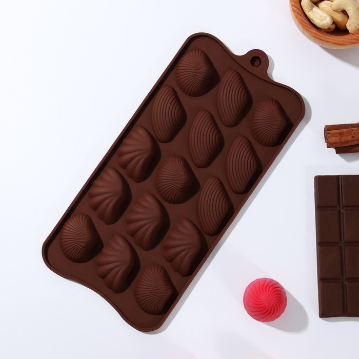 Форма для конфет и шоколада Доляна «Ракушки», силикон, 22×10,5×1 см, 15 ячеек (2,7×3,4 см), цвет коричневый