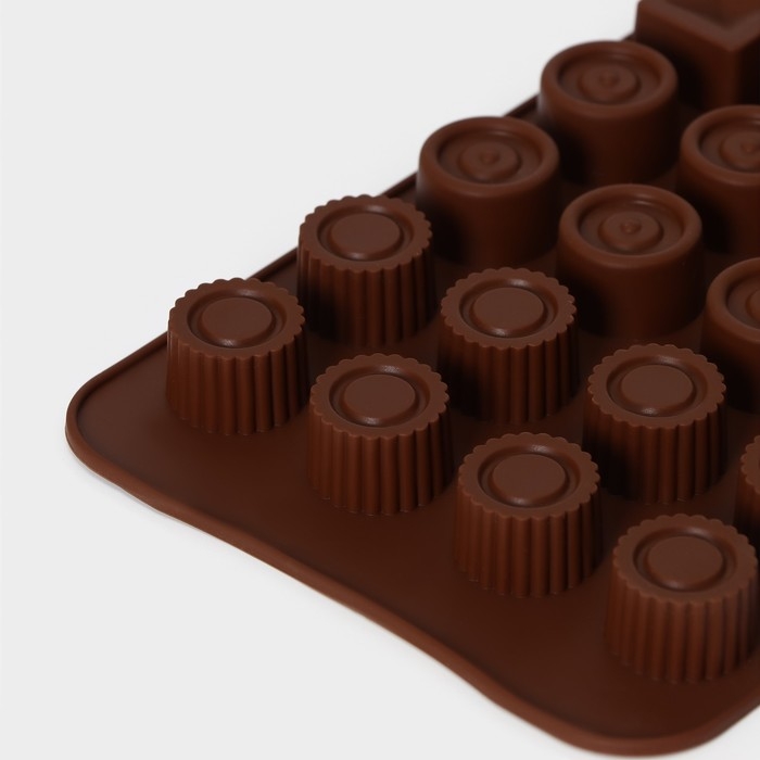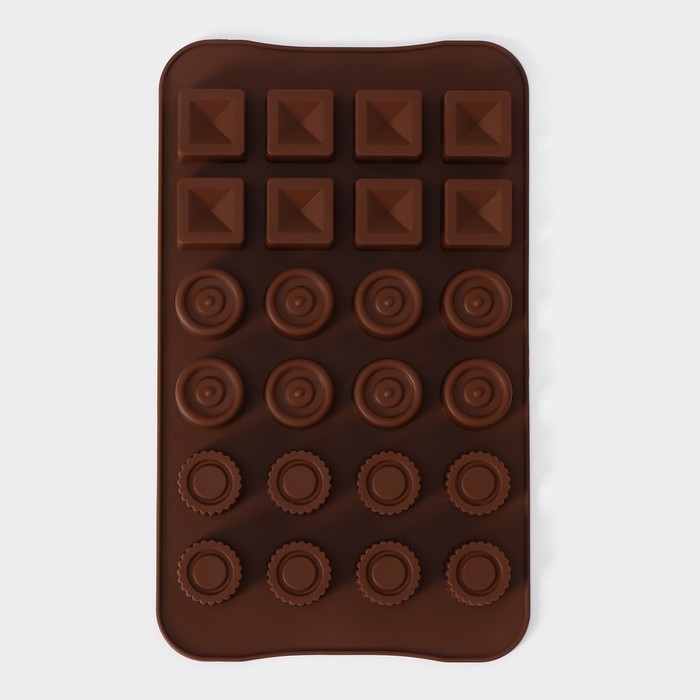 Форма для конфет и шоколада Доляна «Коробка конфет», силикон, 23,2×13,8×0,5 см, 24 ячейки, цвет коричневый