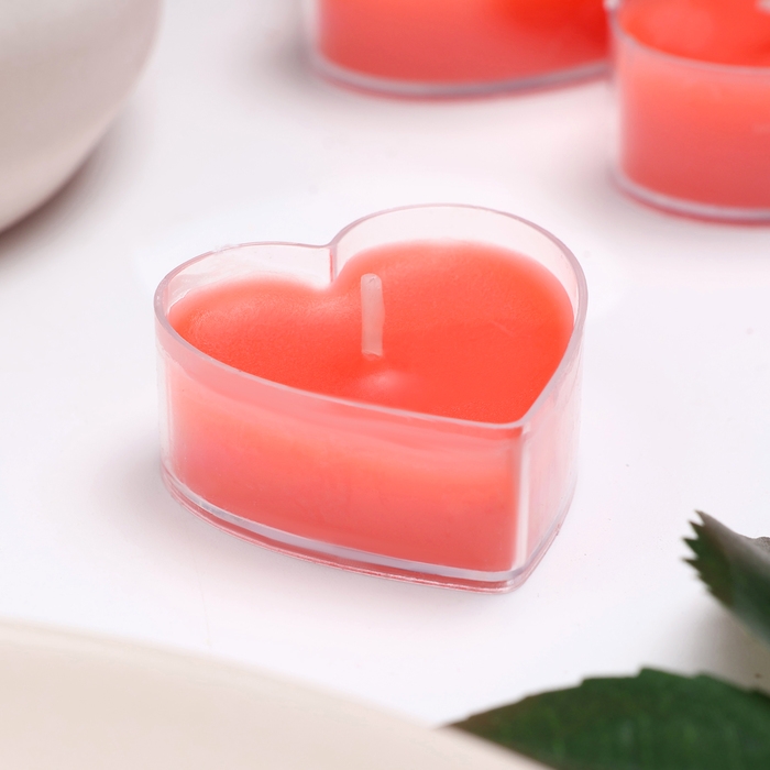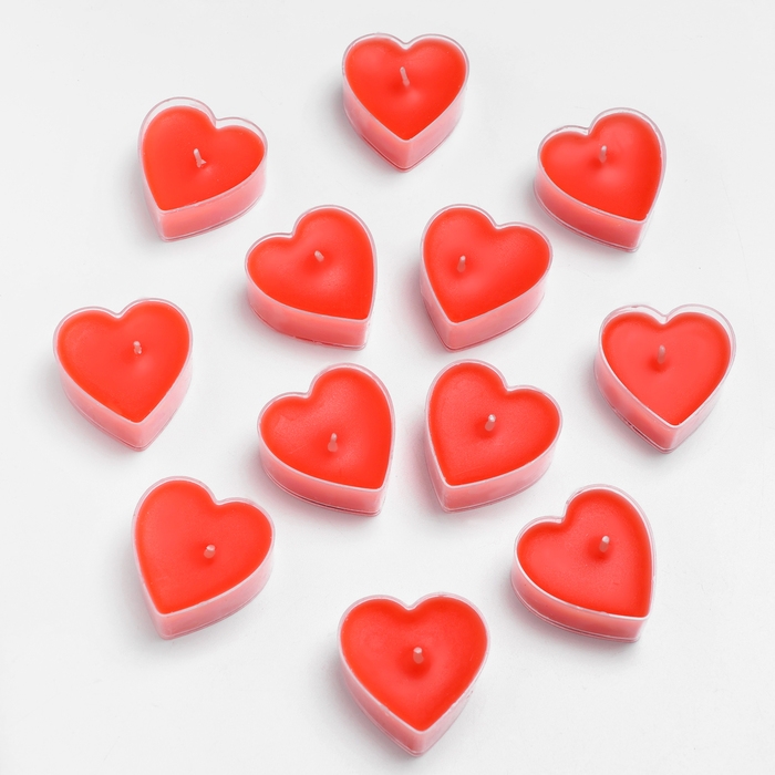 Свеча чайная "Сердце" 6г, 50шт, красные