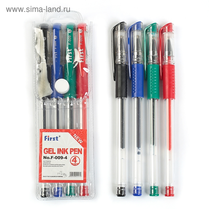 Набор гелевых ручек, 4 цвета, с резиновыми держателями, в блистере на кнопке