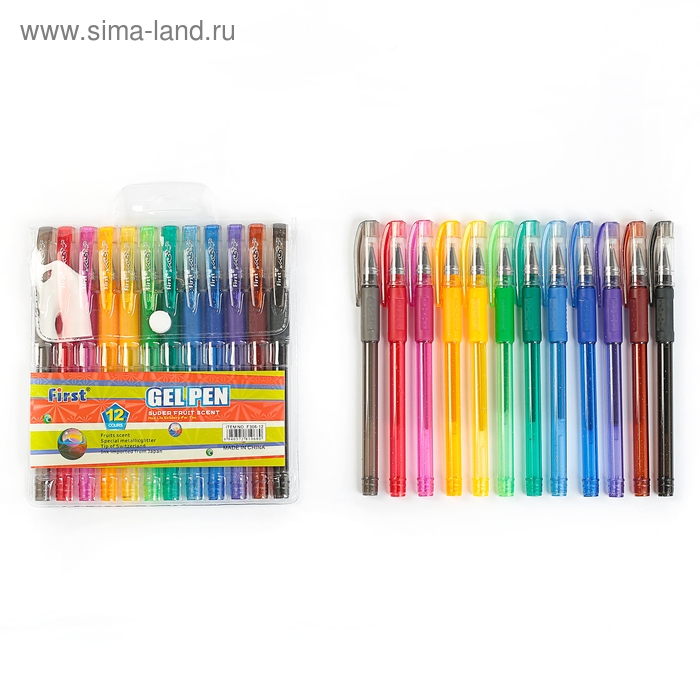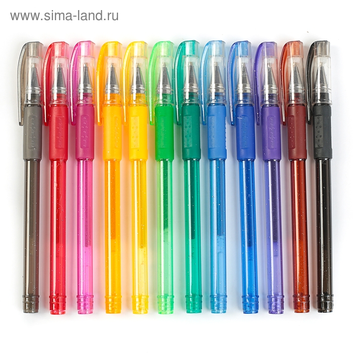 Набор гелевых ручек, 12 цветов, с блёстками, с резиновыми держателями, в блистере