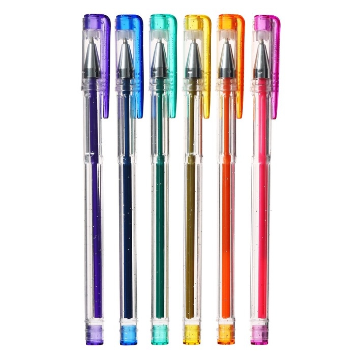 Набор гелевых ручек, 6 цветов, с блёстками, в блистере на кнопке