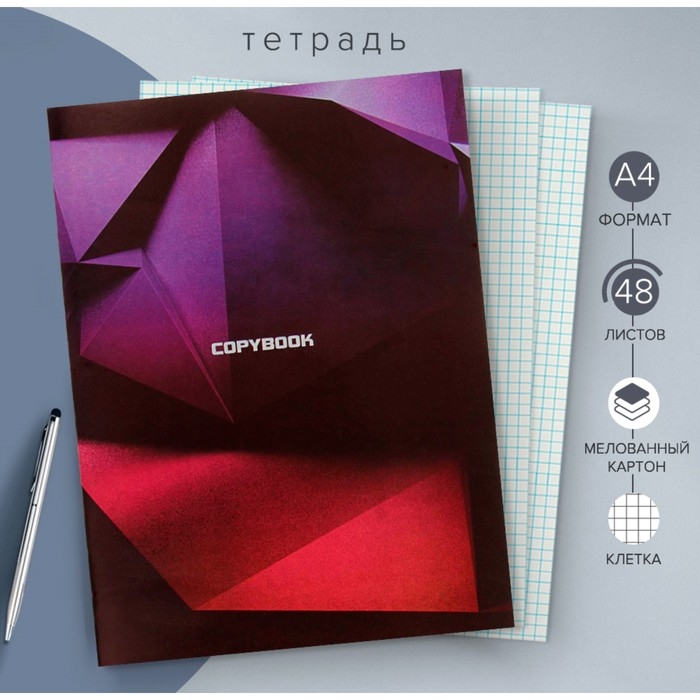 Тетрадь А4, 48 листов в клетку Calligrata "Графика 3D", обложка мелованный картон, блок №2, белизна 75% (серые листы)