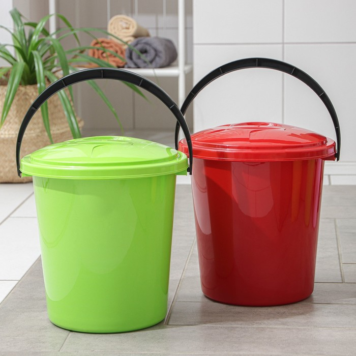 Ведро с фиксирующей крышкой и сливом, 10 л, цвет МИКС