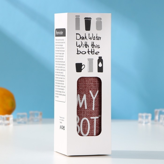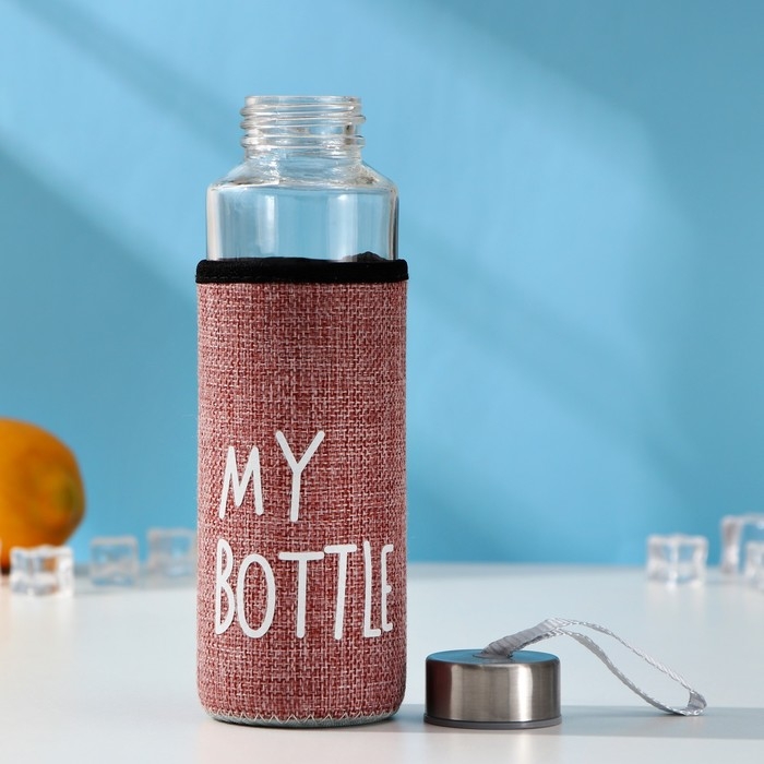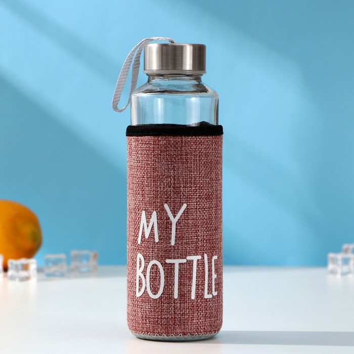 Бутылка для воды стеклянная в чехле «Идея», 300 мл, h=17,5 см, рисунок МИКС